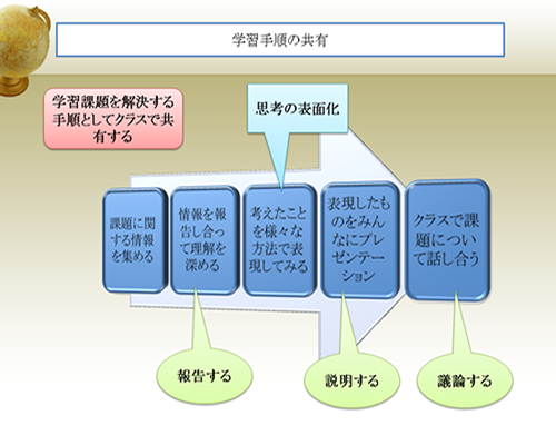 そこで、教師は学習を計画するに当たって、どのようなことを考えさせ、どのようなステップでそれを教室で共有していくのかということを見据え、学習者が自分の思考や思考の道筋を表出することをサポートする必要がある。