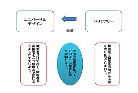 内容面はそういった社会認識を持つ機会として捉えたとして、この教材は論説文としてもおもしろい学習ポイントをいくつも持っている。端的に言えば、「バリアフリー」や「ユニバーサルデザイン」と「ユニバーサルな心」との関係性を読み解いていくこともおもしろい課題だろう。